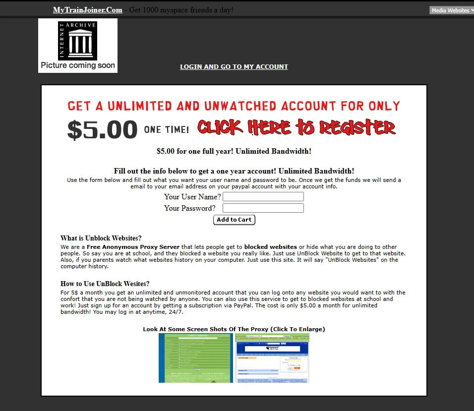 It wasn't until 2016 that I redeveloped the website, but I never got the actual proxy aspect working. I set up the front end, but was too lazy I guess to finish the backend (proxy) aspect.